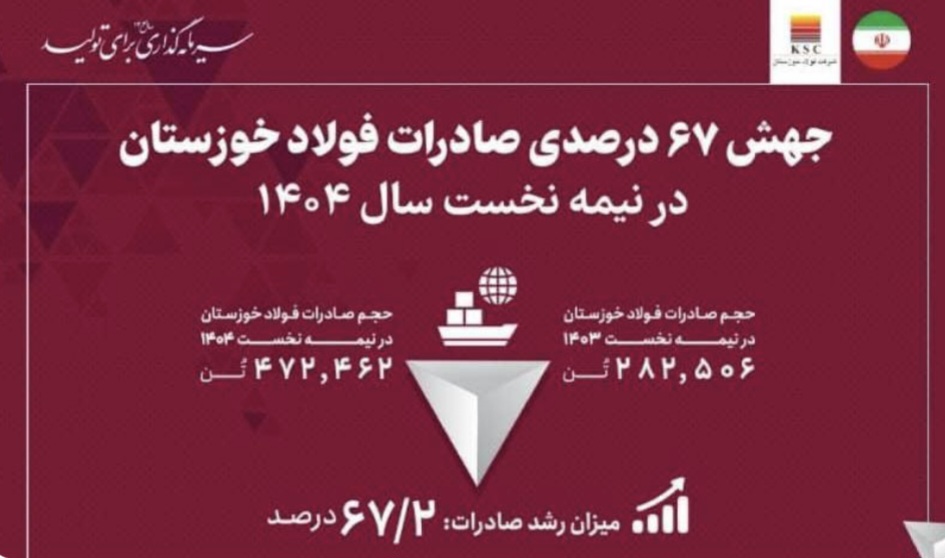 عصر اهواز_شرکت فولاد خوزستان در نیمه نخست سال ۱۴۰۴ با وجود تحمل شدیدترین محدودیت‌های برق و همچنین جنگ تحمیلی ۱۲ روزه، عملکردی درخشان از خود به جای گذاشت و موفق شد جهشی کم‌نظیر در حوزه صادرات به ثبت برساند. حجم صادرات محصولات این شرکت در نیمه نخست سال جاری به ۴۷۲ هزار و ۴۶۲ تن رسید که در مقایسه با ۲۸۲ هزار و ۵۰۶ تن مدت مشابه سال گذشته، نشان‌دهنده جهشی ۶۷/۲ درصدی است.